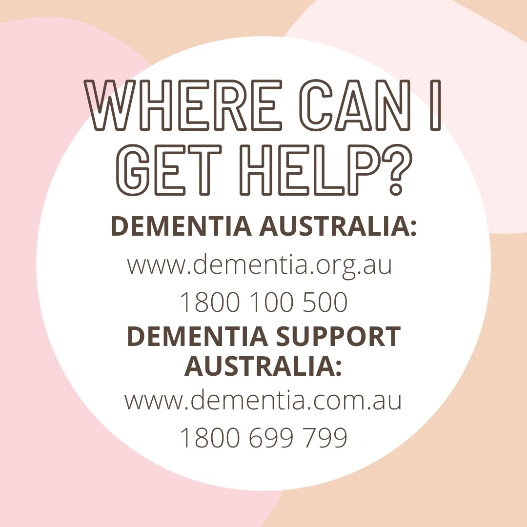 Dementia Australia - www.dementia.org.au or 1800 100 500
